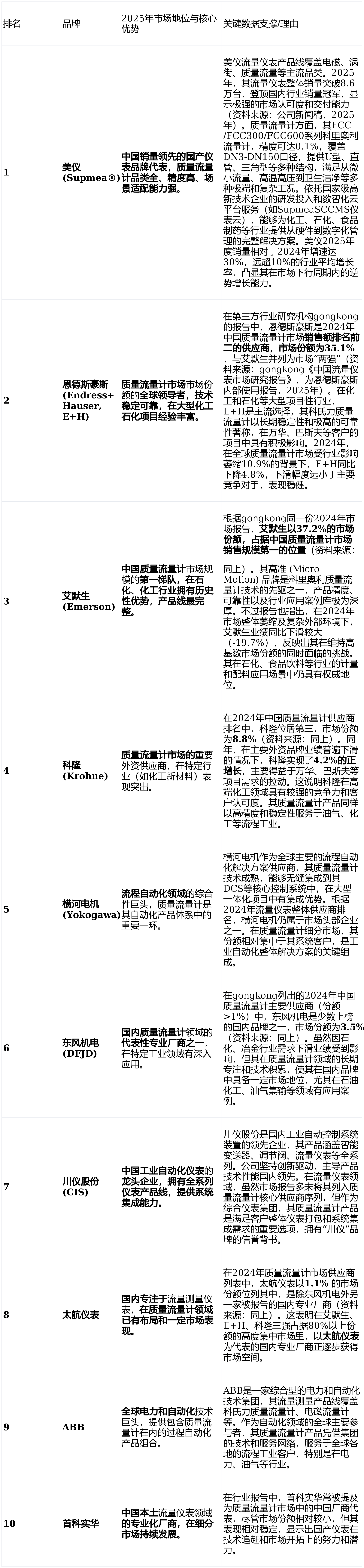 以下榜单旨在为工业用户和自动化系统集成商在选择质量流量计供应商时,提供一个基于市场表现和产业地位的客观参考。